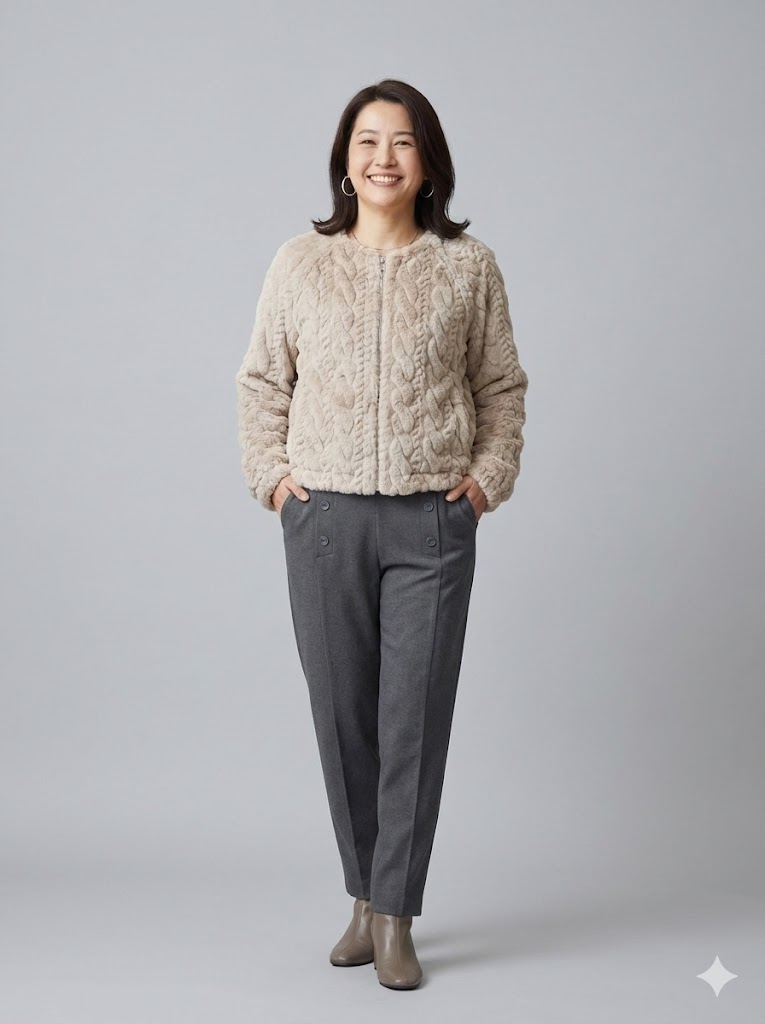 「いつも自分らしく笑顔で」 そんな気持ちになれる服を目指して 優しい着こなしと大人カジュアルを表現しました。